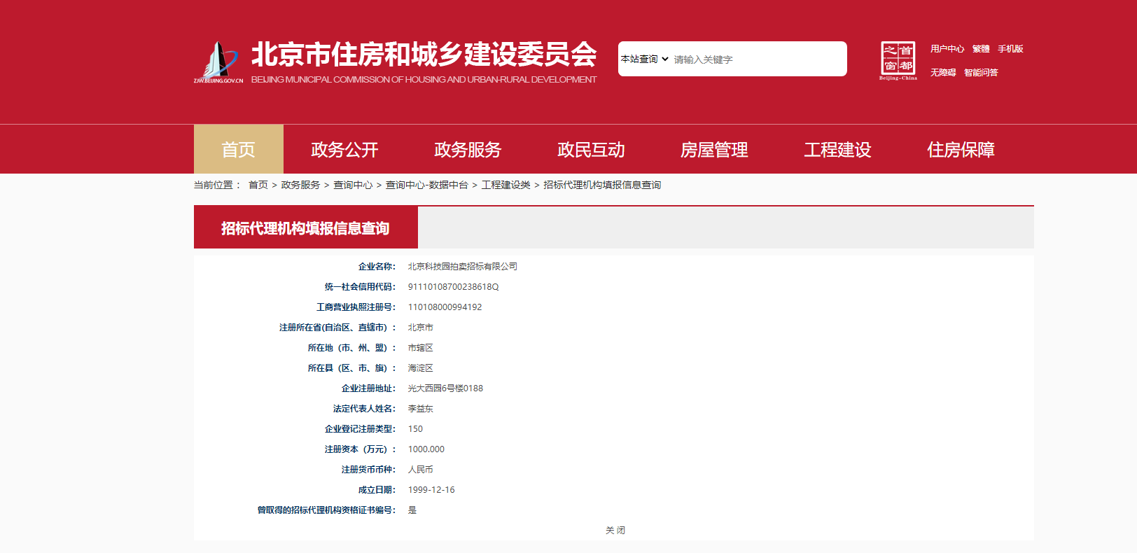 北京市住房和城鄉(xiāng)建設(shè)委員會(huì)招標(biāo)代理機(jī)構(gòu)填報(bào)信息