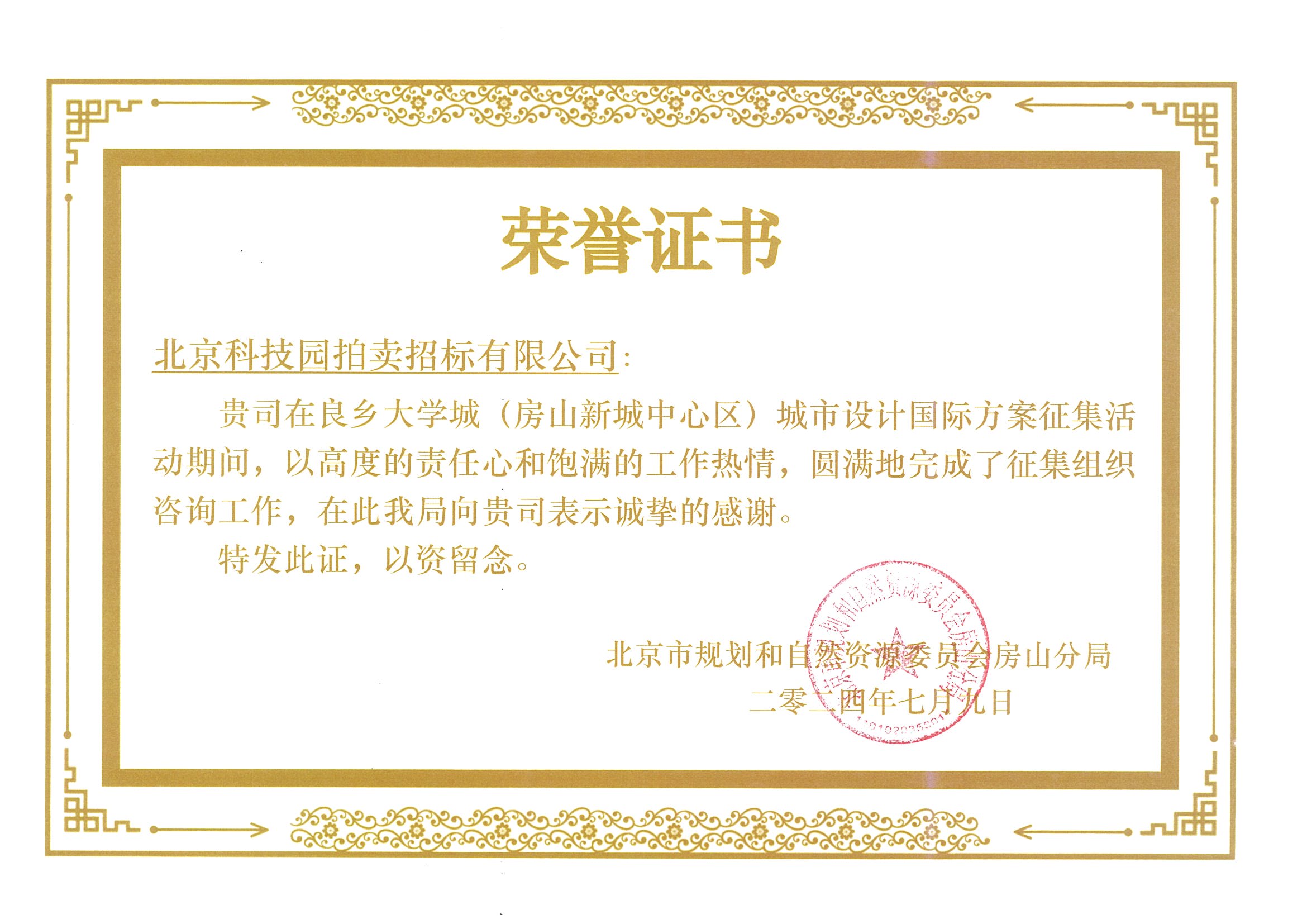 良鄉(xiāng)大學(xué)城(房山新城中心區(qū))城市設(shè)計(jì)國(guó)際方案征集榮譽(yù)證書(shū)