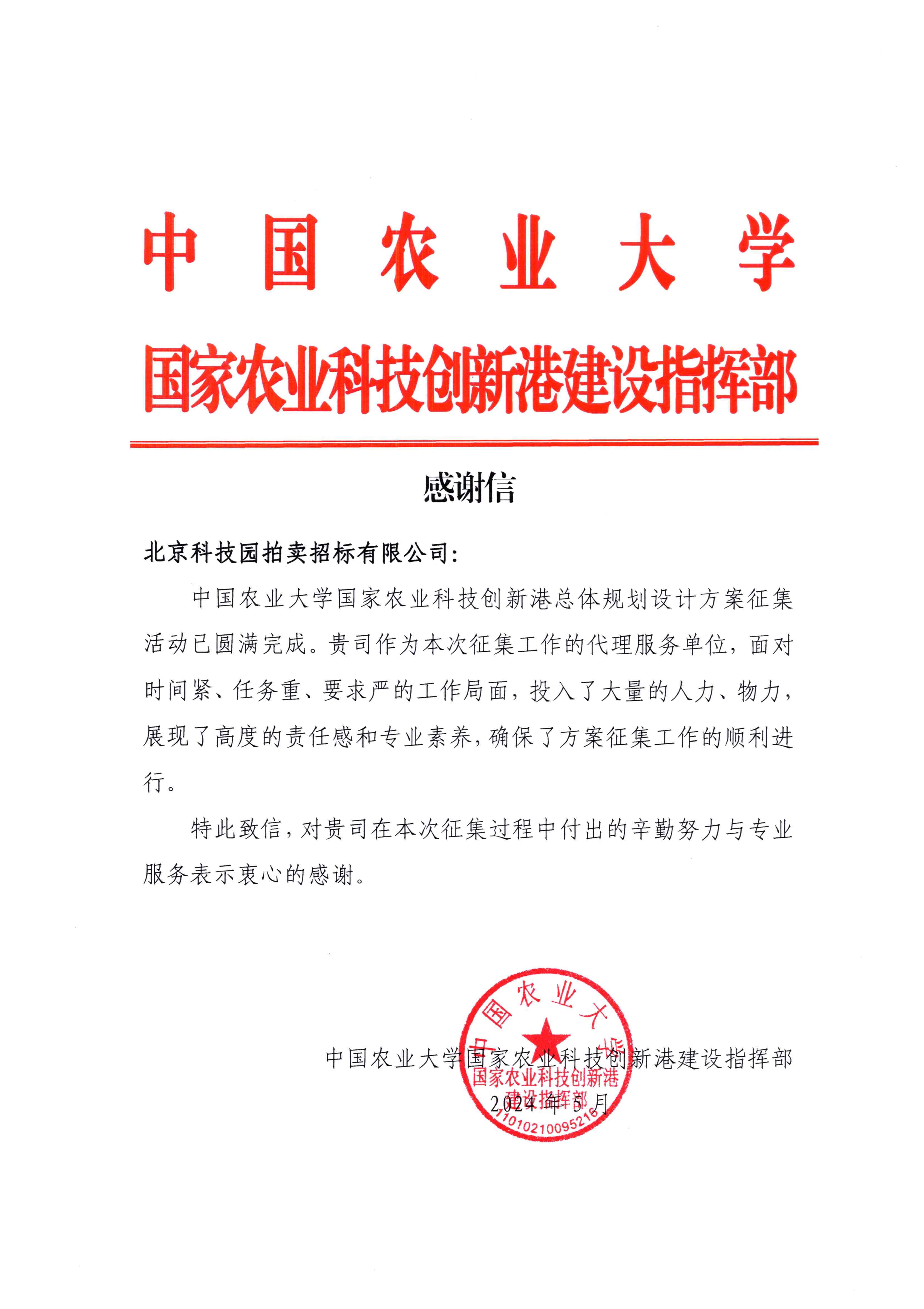 中國(guó)農(nóng)業(yè)大學(xué)科技創(chuàng)新港(總體規(guī)劃設(shè)計(jì)方案)感謝信