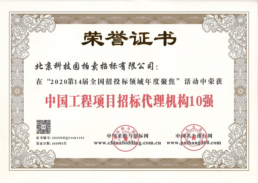 2020第14屆全國招投標(biāo)領(lǐng)域年度聚焦“北京市招標(biāo)代理公司10強