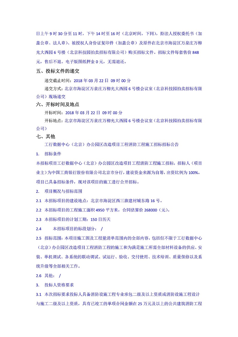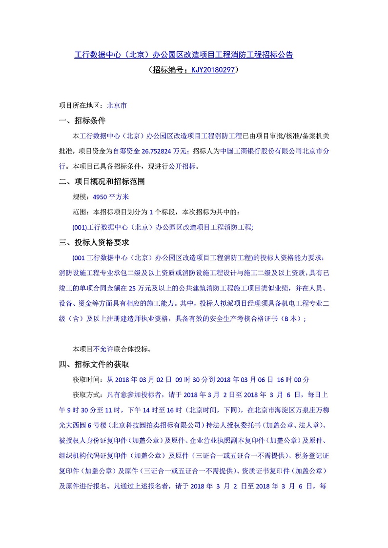 工行數(shù)據(jù)中心(北京)辦公園區(qū)改造項(xiàng)目工程消防工程招標(biāo)公告