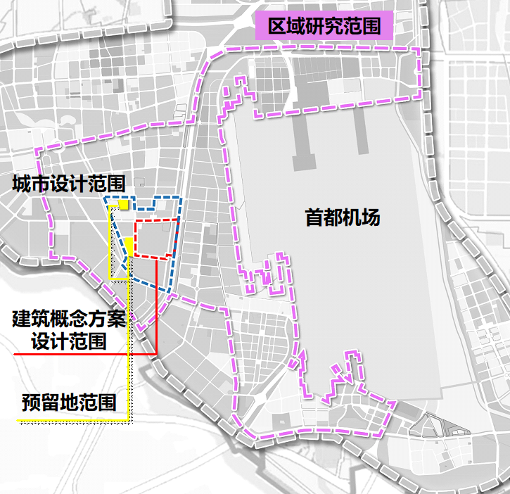 (3)區(qū)域研究:在臨空經(jīng)濟(jì)示范區(qū)轉(zhuǎn)型升級的大背景下,結(jié)合周邊存量土地資源的改造利用,重點在功能布局、公共空間構(gòu)建、景觀塑造、交通體系等方面提出優(yōu)化意見和意向方案。研究范圍約3182公頃。
