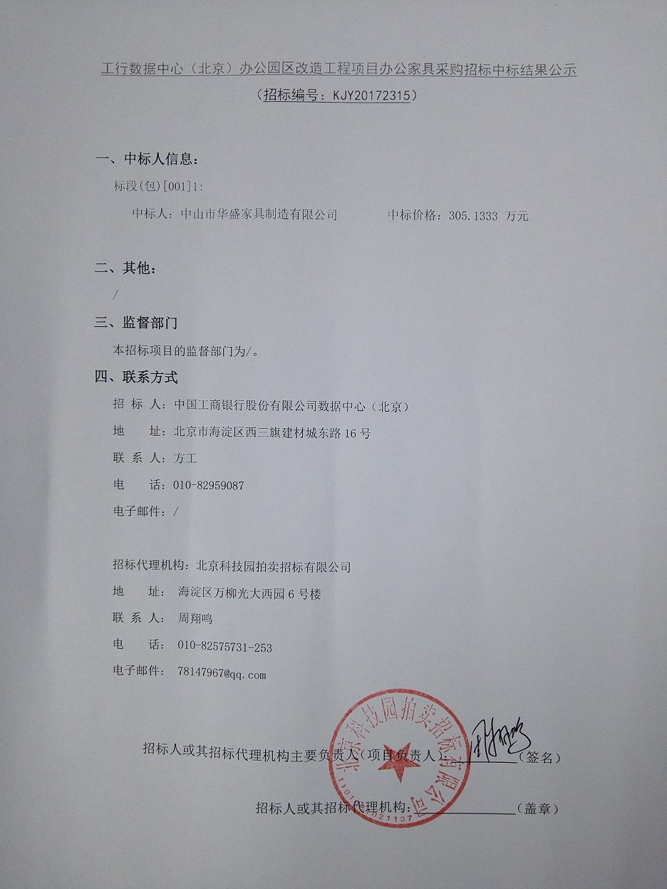 工行數(shù)據(jù)中心(北京)辦公園區(qū)改造工程項目辦公家具采購招標中標結(jié)果公示