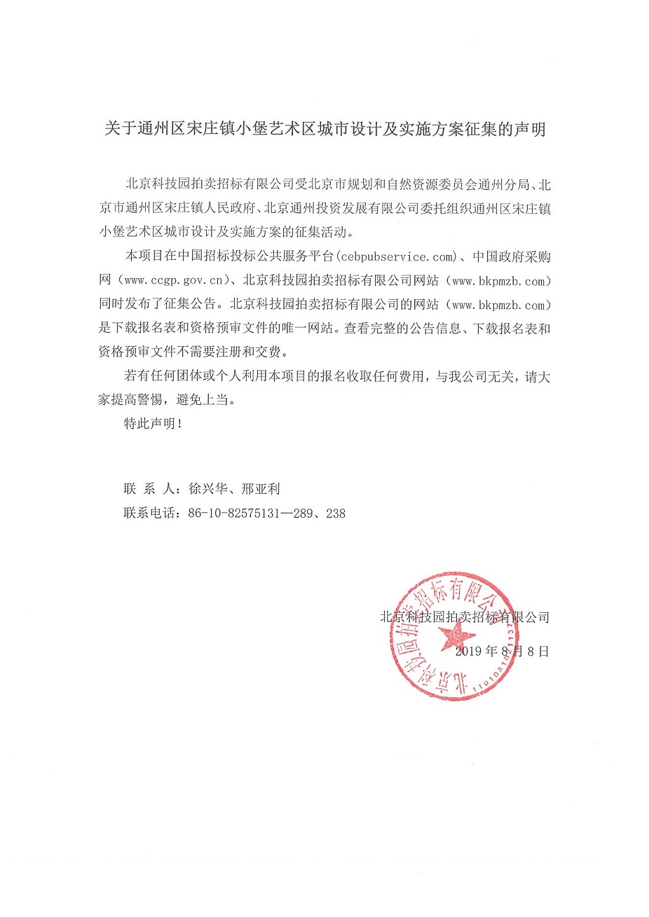 關于通州區(qū)宋莊鎮(zhèn)小堡藝術區(qū)城市設計及實施方案征集的聲明